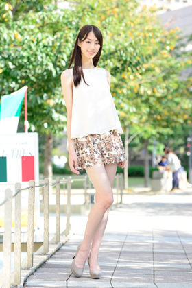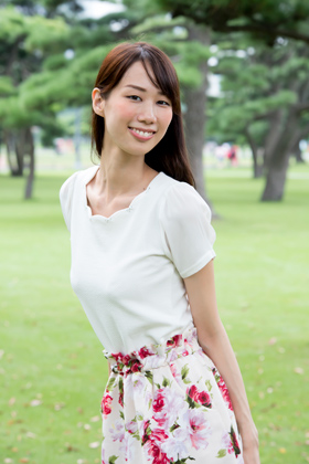 手足が長く抜群なボディバランスと、<br> ナチュラルで優しい笑顔が印象的です。<br> 性格は芯があり、しっかりとしていて、<br> 華道、茶道を得意とする古風な一面も持ち合わせています。