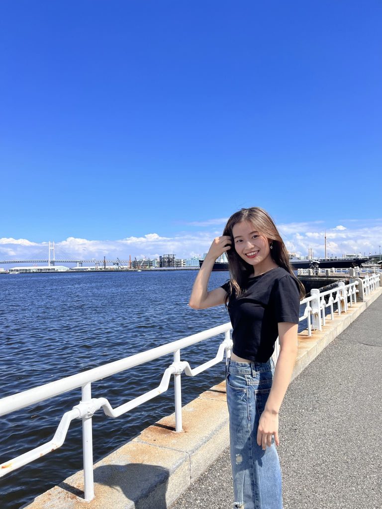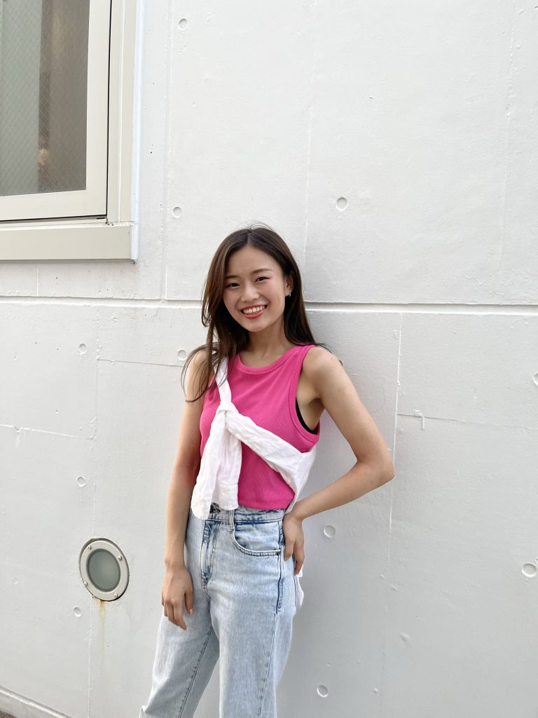 10年間続けた硬式テニスで身につけた根気強さと体力には自信があります。まっすぐ伸びた脚もチャームポイントです。