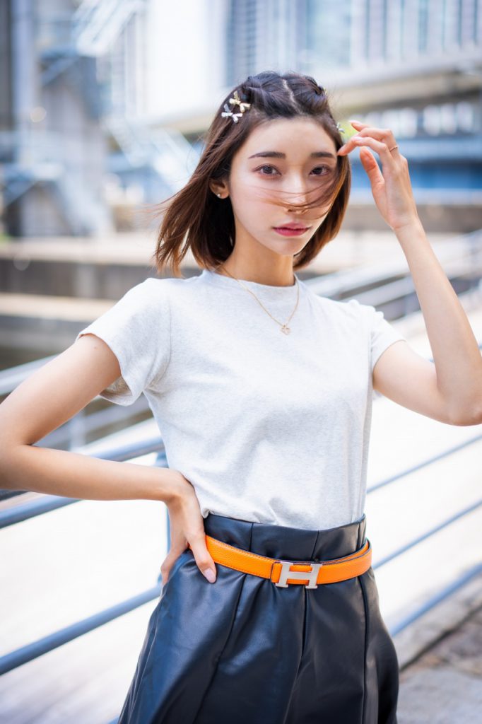 すらっと長い脚と、きめ細やかな肌が魅力的。<br/> 外資系IT企業に勤めるキャリアウーマンな一面もあり、<br/>YouTubeなどSNSでの発信力も持っています。